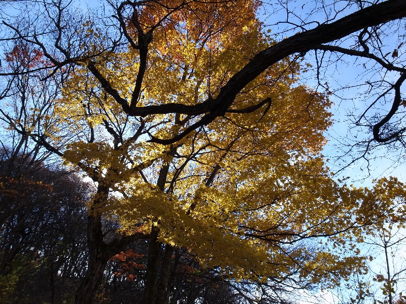 山を下る途中、紅葉がまだちょっと残ってた。
